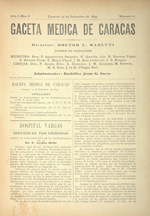 Primer texto producido y editado en Venezuela en el área de la bacteriología escrito por José Gregorio Hernández luego de cursar sus estudios de especialización. Fue el texto base de la catedra de Bacteriología de la Universidad Central de Venezuela fundada también por José Gregorio.